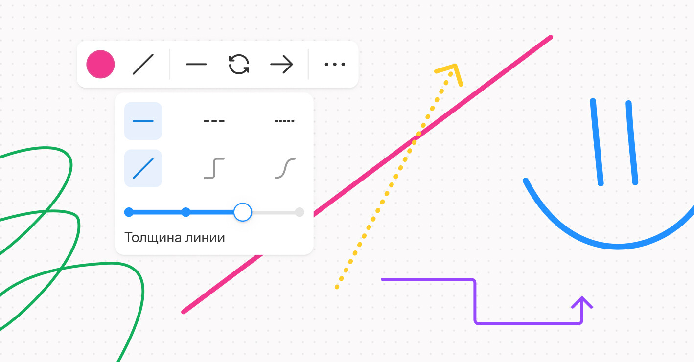 Чтобы перейти к настройкам коннектора, откройте панель инструментов на доске: можно выбрать обычную линию без наконечника или коннектор со стрелкой. Для настройки параметров кликните на линию — откроется меню, где легко задать цвет, размер, толщину линии.